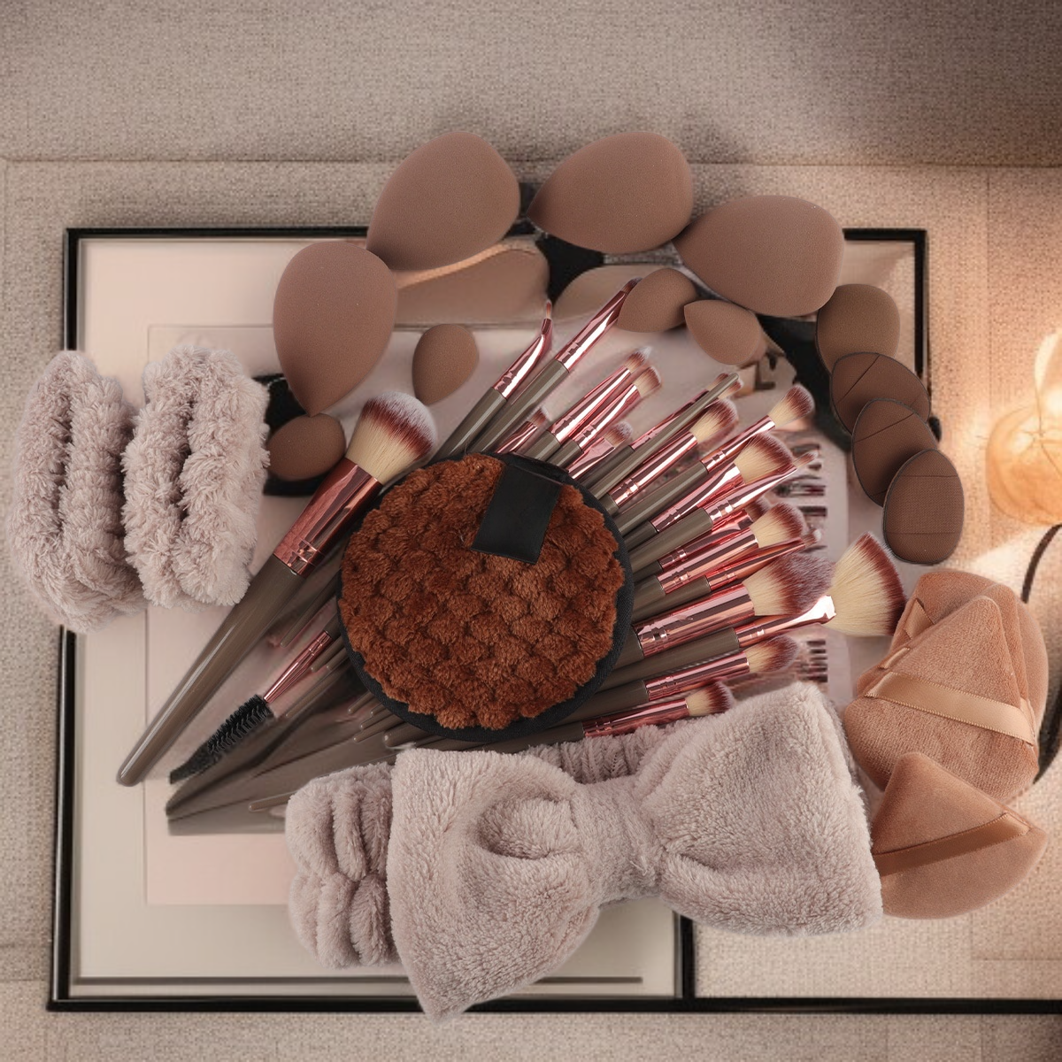 파우더 퍼프 세트는 얼굴 클렌징과 메이크업 파우더 퍼프 등 다양한 뷰티 도구를 결합한 것입니다